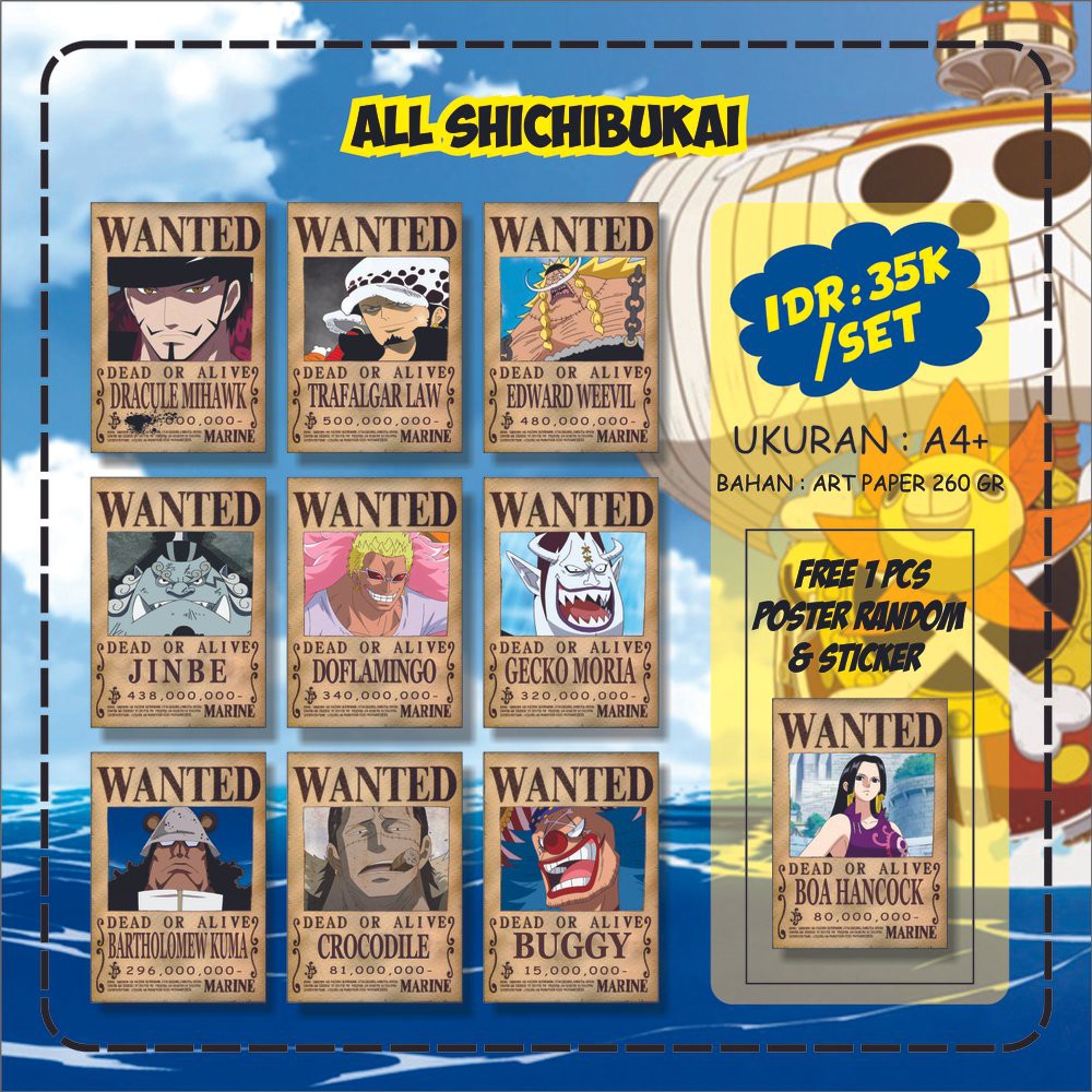 Jual Poster Wanted Buronan Bounty Hunter One Piece Shichibukai Supernova Limited Min 9 Pcs Di Lapak Zims Bukalapak from s0.bukalapak.com Poster buronan one piece kosong / mentahan foto wanted gambar untuk status wa / 600 x 600 jpeg 273kb. Jual poster buronan one piece 1 set kru shp dengan harga rp60.000 dari toko online baggu world, kab. Mantan poster buronan sanji, menggambarkan gambar yang buruk. Big mama one piece one piece new world one piece logo one piece crew one piece wallpapers one piece wallpaper iphone animes wallpapers sports wallpapers hd wallpaper. Im adalah individu yang sangat tinggi dalam pemerintahan dunia dan pemegang sebenarnya dari tahta kosong yang bahkan para gorosei sujud menyembah. Kemunculan raid suit sanji dalam mode stealth black begitu sangat menarik dimana kekuatan o soba maks mirip dengan kekuatan yang dimiliki oleh absalom yakni kekuatan suks suke no mi. Bagus…jangan lupa di update, lagian ada yang kelupaan tuh: Kunjungi pos untuk informasi selengkapnya.